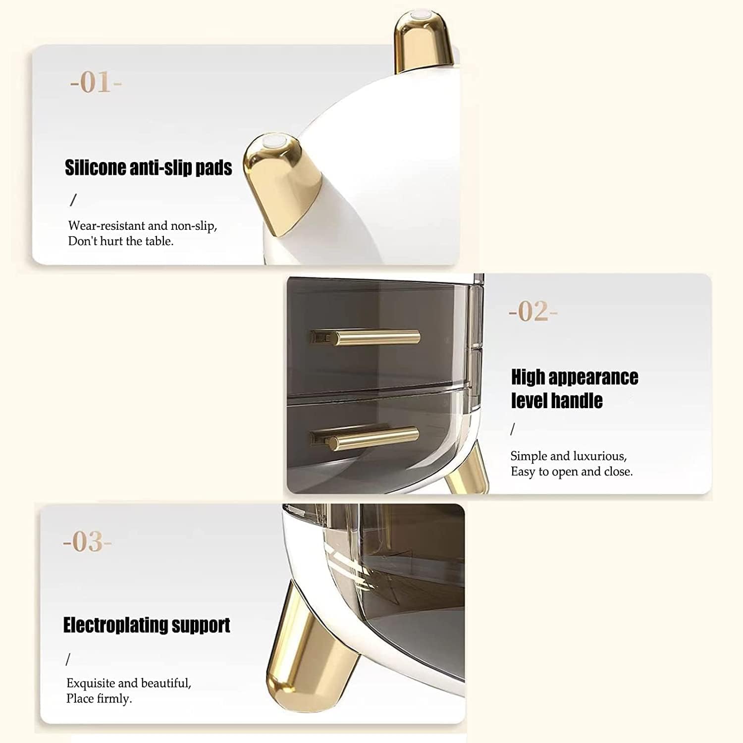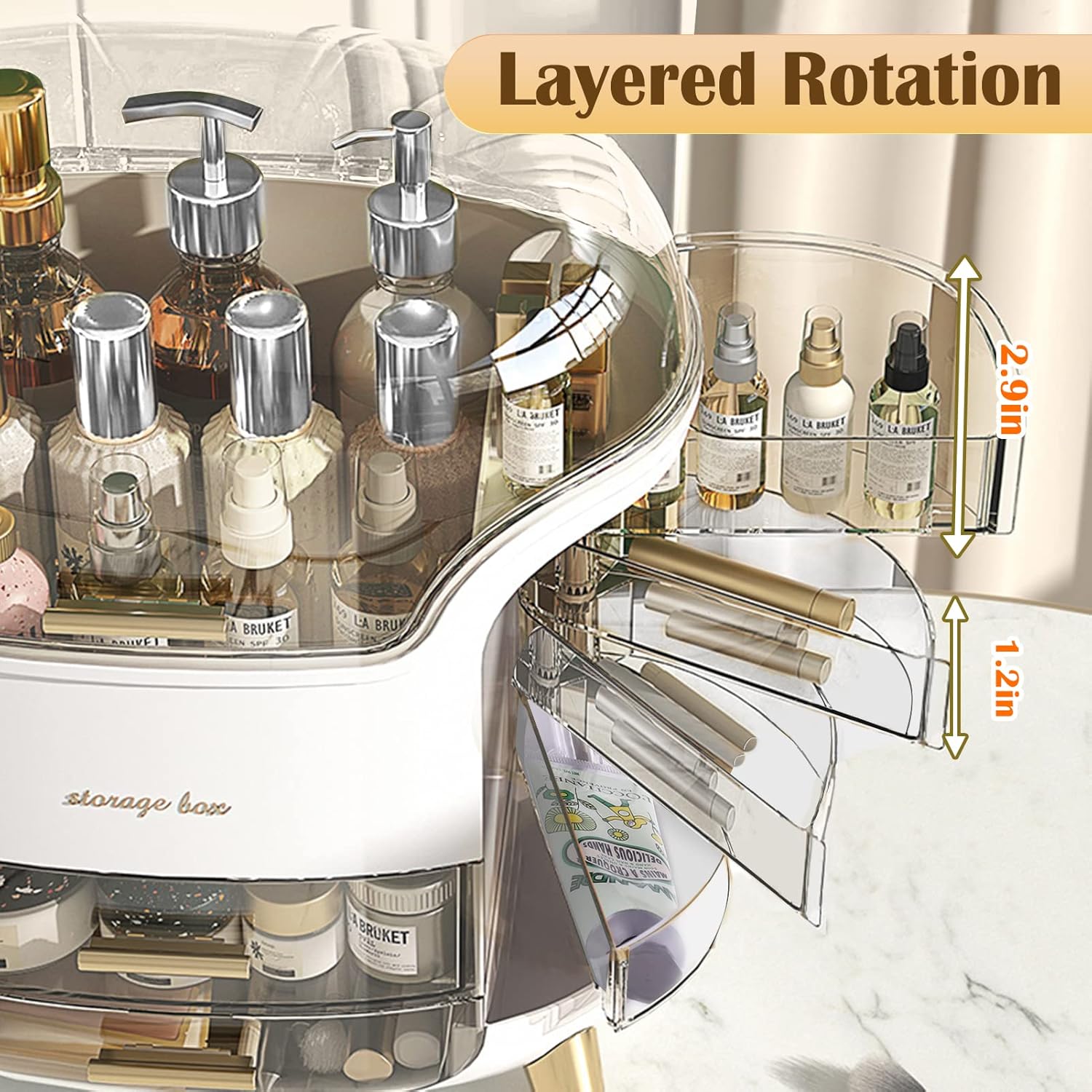 The crystal-clear top cover opens wide for easy access and closes securely to shield your expensive serums, creams, and cosmetics from dust, water, and humidity. Keep your products hygienic and your vanity looking pristine.