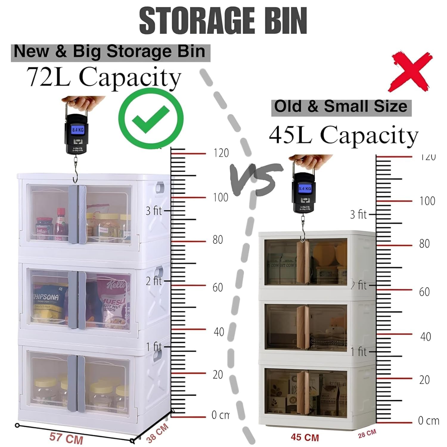 Stop unstacking heavy boxes just to find what you need. These heavy-duty storage bins feature front-opening doors for instant access to anything, on any level. With a massive 72L capacity and a foldable design, they are the ultimate upgrade for your home storage.