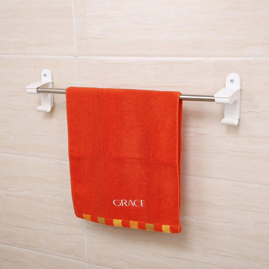 Add instant, damage-free storage to any wall with this self-adhesive towel bar. It holds up to 5kg without drilling and features handy hooks for extra organization. A sleek, waterproof, and versatile solution for your bathroom or kitchen.